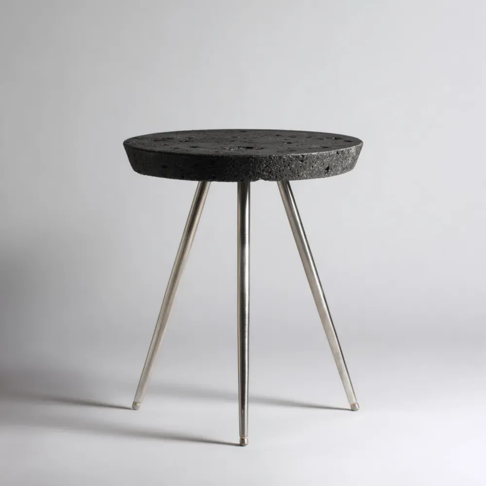 Beistelltisch aus Lavastein und Edelstahl, 45x50 cm, Schwarz